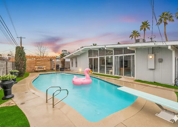 Doté d'une piscine privée pour votre détente, cet établissement Las Vegas Eichler, Pool, Cabana Bar, Fast Wifi est situé à moins de 7 km de Golf Badlands.